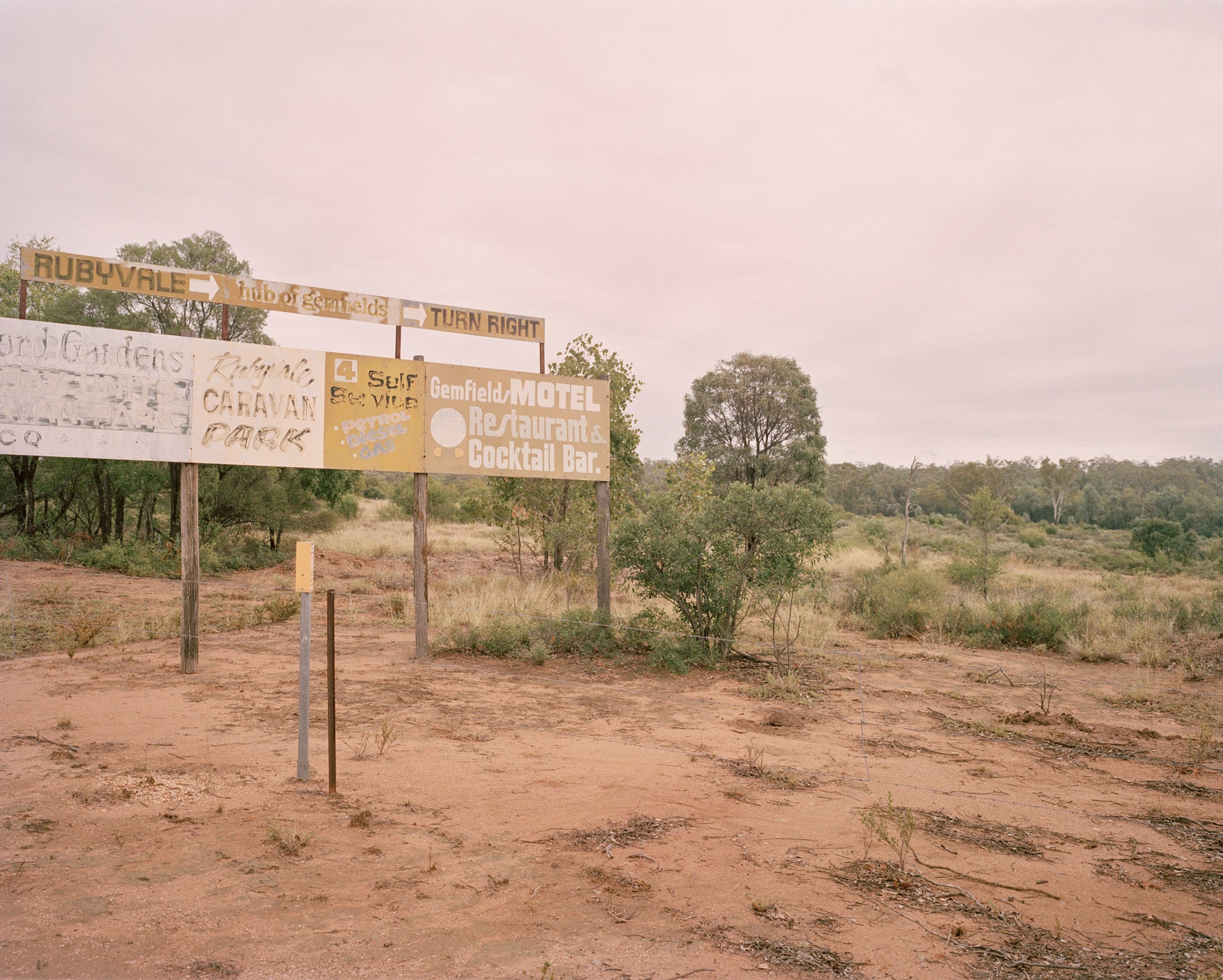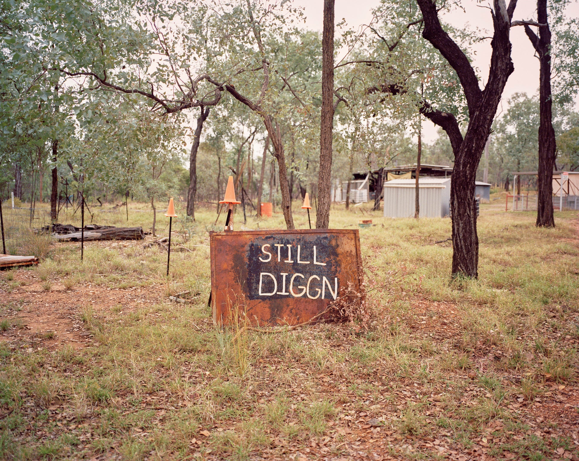 Rubyvale lay at the last frontier of the Wild East. The town spills forth from a fortuitous bedrock concealing an elusive blue-tinted gem — A history of booms and busts has pushed and pulled at Rubyvales foundations, shaping the terrain and eliciting periodic surges of fervour. Plastic markers award it an informal governance, framing up makeshift dwellings patinated by an extreme climate. An uncertain value lays dormant underfoot. The wailing siren of its proximity draws miners towards an infectious pursuit. Persistence yields a haphazard route to making it big. The odds are high. With a camouflage of optimism, miners chip away at long, hard days. Sworn to secrecy, they hold full houses tightly to their chest to avoid unwanted attention. Everything is a gamble.