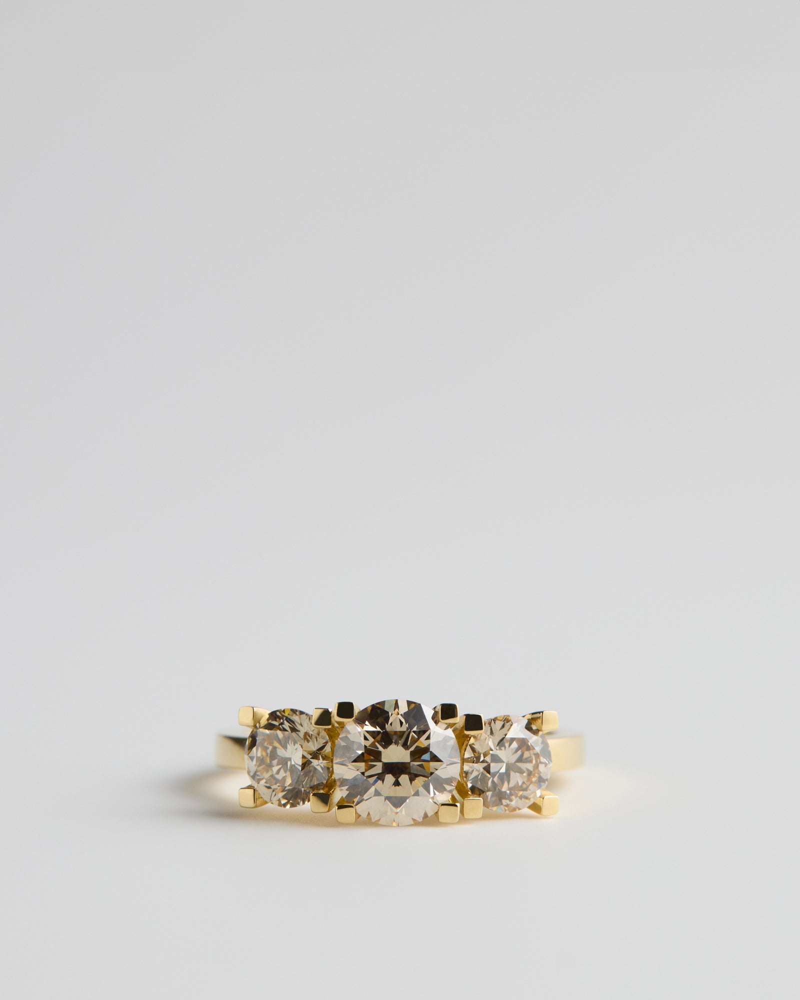 18ct Yellow Gold with three natural Round-Cut Champagne Diamonds