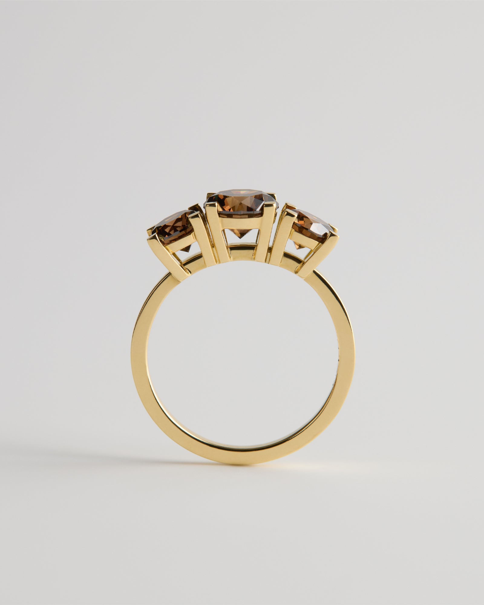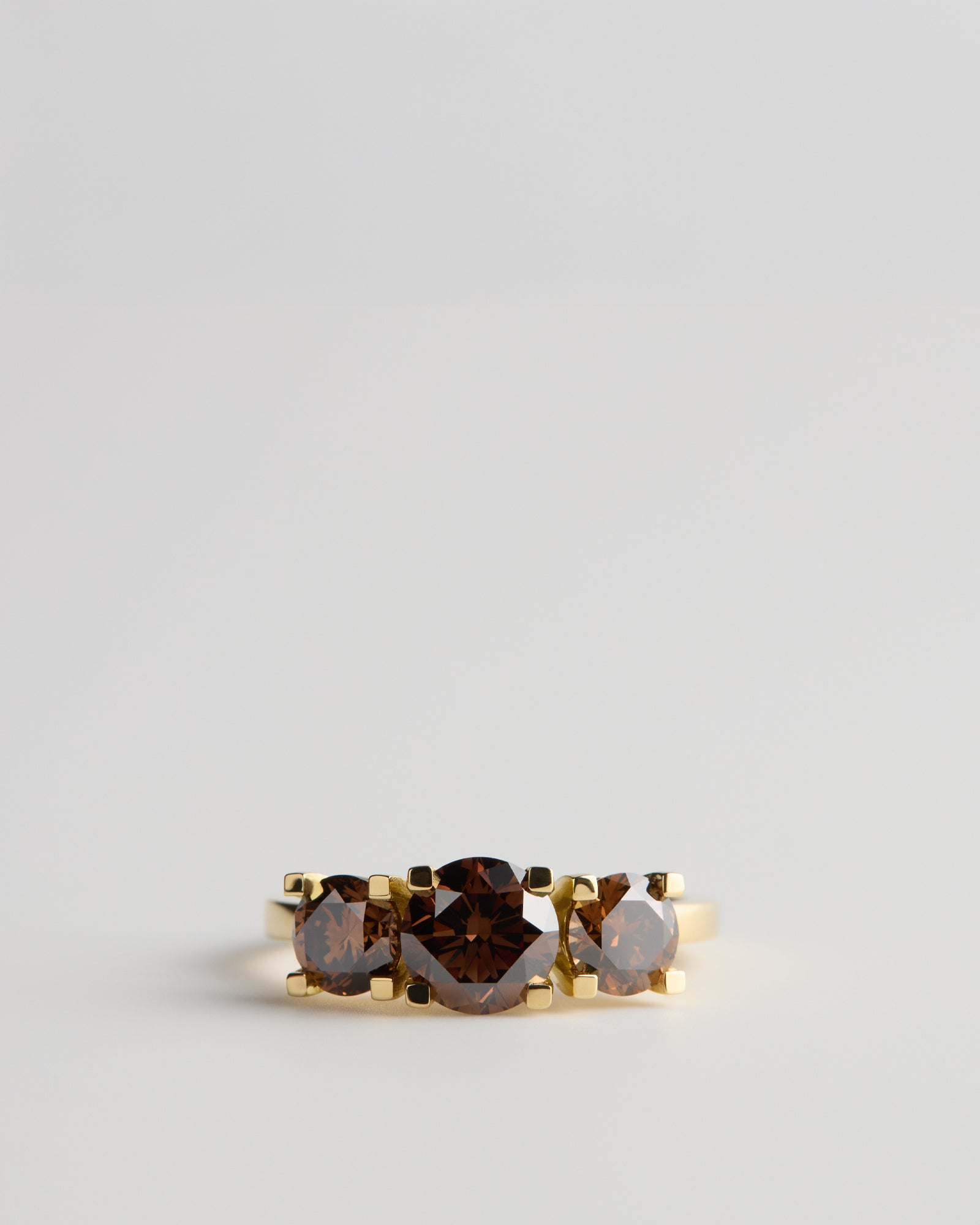 18ct Yellow Gold with three natural Round-Cut Champagne Diamonds